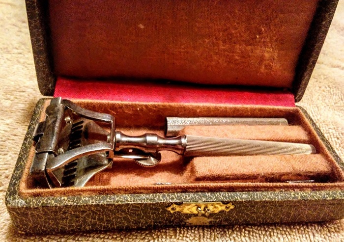 Из коммерческого справочника Didot-Bottin - 1909 Бритва Le Touriste с подвижным лезвием при помощи рычага. FELIX GEORGET à Nogent-en-Bassigny ( из города Ножан) (бывший торговый дом Феликса Тевено). основан в 1725 году. Re: Le Tourist the Single Edge Razorтема раскрывается...