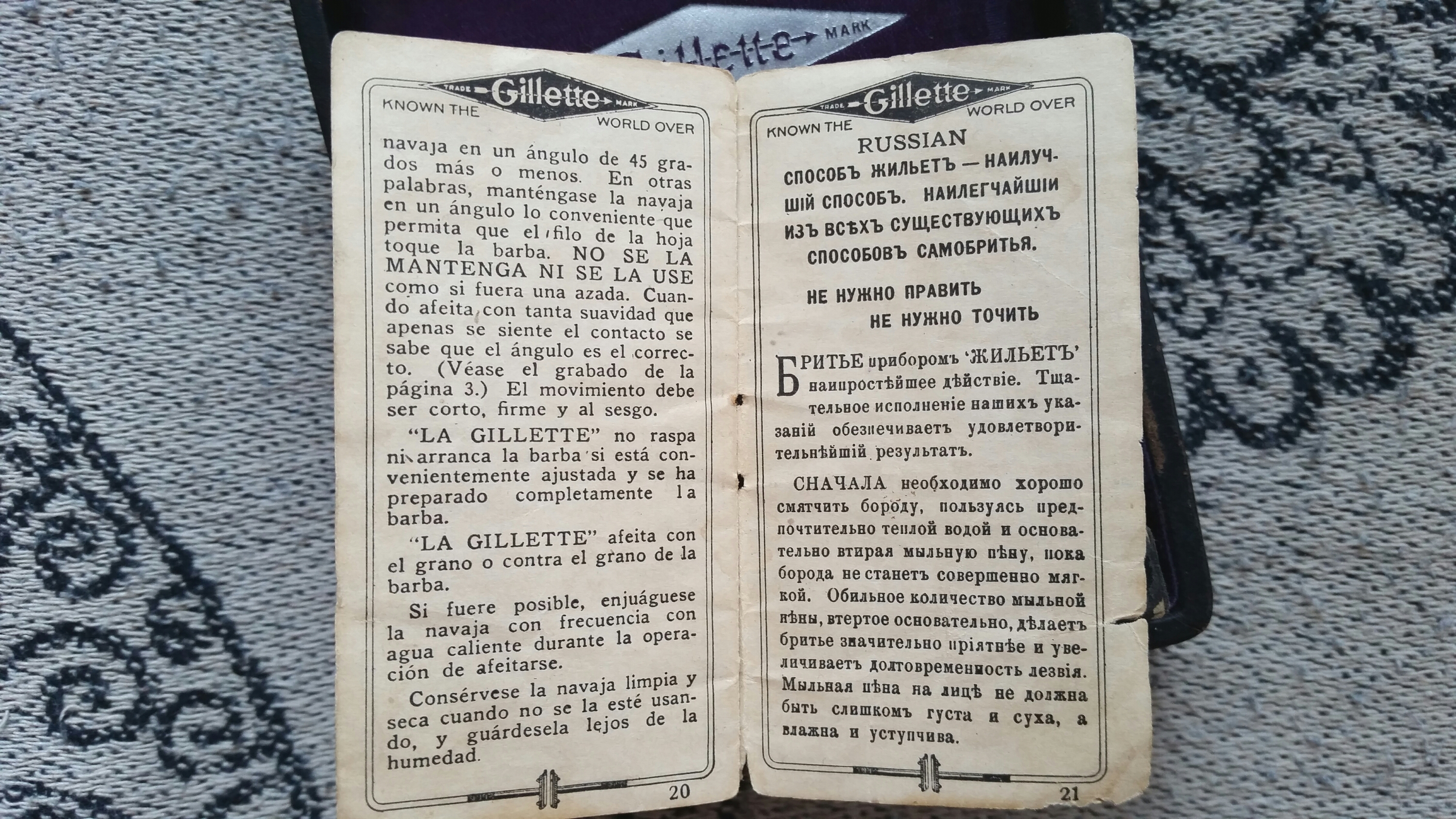 The GILLETTE Company(*)Инструкция к станку Джиллетт 1916 года. На английском, французском, немецком, итальянском, испанском, русском. Самые интересные, конечно, последние 4 страницы, но и иллюстрации тоже