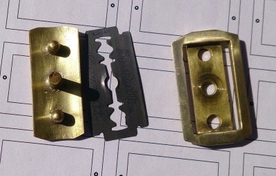 Штырьки позиционирования лезвия сделал из контактных штырей евровилки и вместе с крепежным винтом тоже пропаял.
