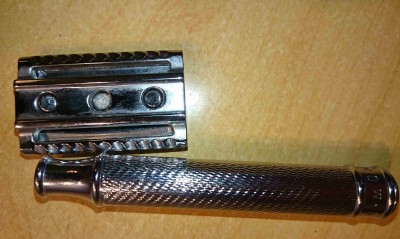 P.S. Кстати Muehle отказала в претензии на возврат денег. Т.е. к клиентам отношение тоже соответствующее. Косяки признавать не хотят (upd: После переписки с дистрибьютером случай все-таки признали гарантийным). Я думаю многие согласятся, что бритва обязана выдерживать падения с рук. У меня было кучу станков и ни один не ломался от падения. Считаю, что данный станок опасен, так как если он сломается во время бритья (а с таким материалом это возможно), то можно нанести себе серьезную травму. Чтобы не было сомнений, что вся головка не совсем металл я сломал часть головки (причем без особых усилий):