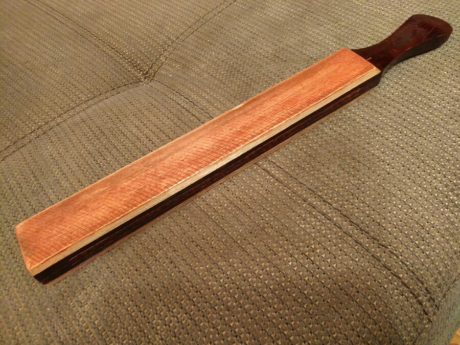 По теме - на, более, чем 200 страницах, всё расписано. Полоса 3-5 мм толщиной, 300-400 длиной и 40-50 шириной коровьего чепрака растительного дубления без видимых дефектов, шкурим 1500-2000. Смываем калошей, клеим на фанерку. На первые 2-3 месяца тренировки достаточно.
