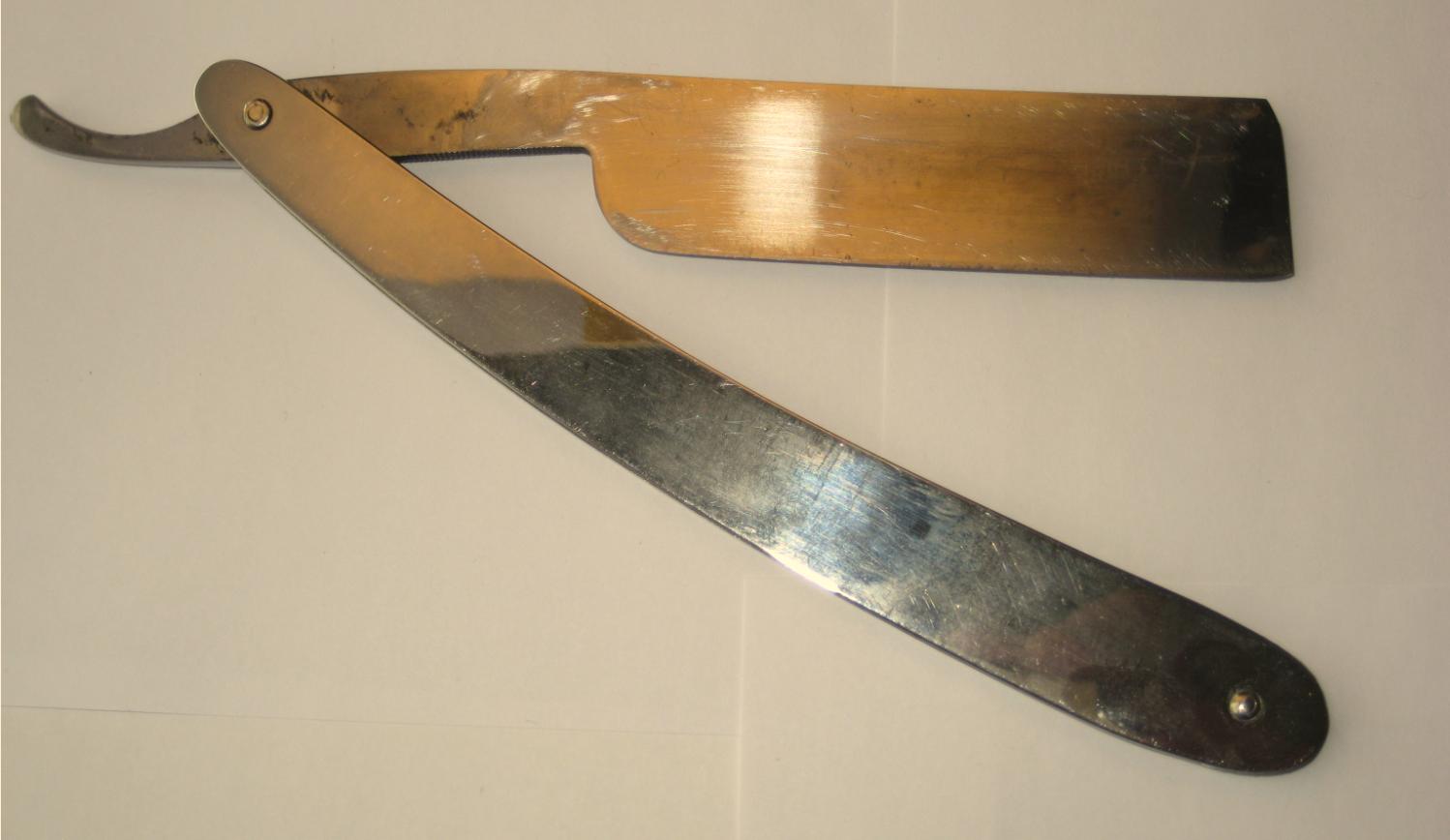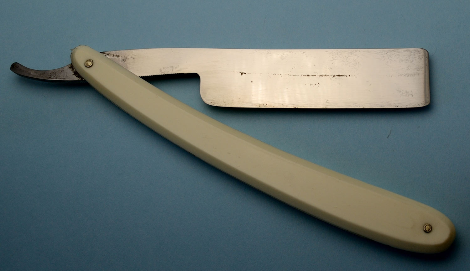 Начал рассматривать - стороны обработаны неодинаково, глянул в профиль - ба, микротом. Я так понимаю, что это лабораторный инструмент, для бритья не использовался?