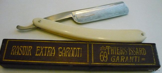 Прошу совета (надеюсь, так сказать, и уповаю). Форум читаю давно, вот и решил прикоснуться к прекрасному В нашей не сильно бритвенной местности (Белоруссия) набрел на вот такой экземпляр опасно бритвенного изделия - Thiers-Issard Dandy "LUX" Barbes dures, по заверениям продавца 1937 год...просит 80у.е. с зеленым отливом. Возможно уважаемый Олег Бритва откликнется, как знаток данного легендарного производителя. Буду признателен за совет С уважением, новичок