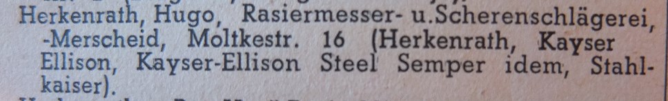 TM Herkenrath, Kayser Ellison, Kayser-Ellison Steel Semper idem, Stahl-kaiser тут не путать с "Kayser Ellison & Co" Немецкие бритвы XIX-XX веков. Обсуждение качества и производителейИз "Технической энциклопедии" 1931 год: