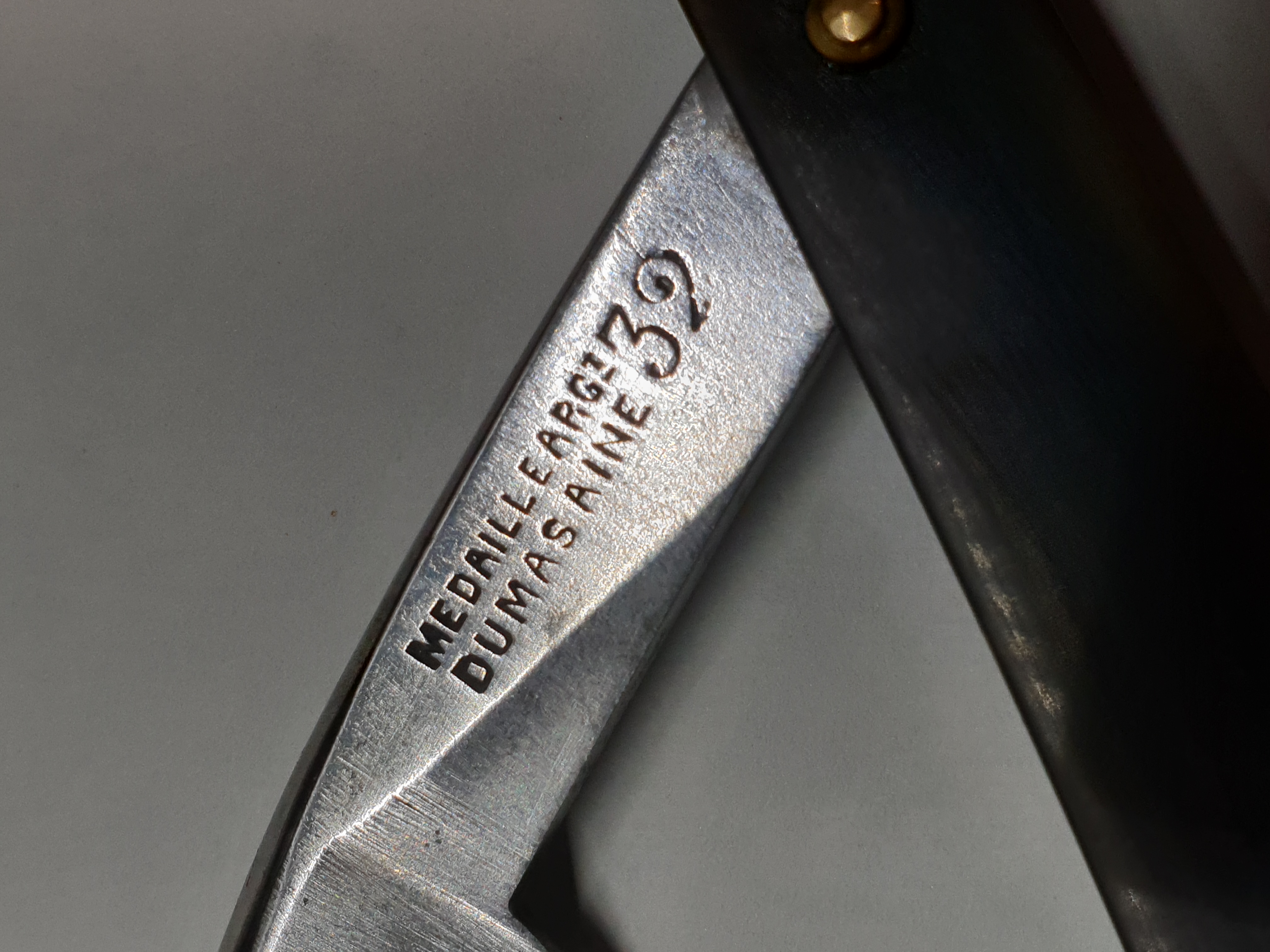 S&T, за ссылку на этот сайт спасибо, надо будет поискать информацию по всем своим французам. Например Veritable Dumas & C 63, интересно что-то будет найти. Клейма да, на наших Dumas Aine Agt 32, одинаковые и формы бритв похожи, разница только в наличии хвостов. Вот ещё одно подтверждение существования одной модели с хвостом и без.
