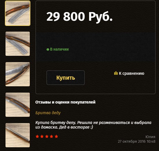 Обзор бритвы с сайта: бритва-опасная.рфМне вот интересна целевая аудитория подобных продавцов. Человек, который бреется клинковой бритвой понимает примерно что такое старые бритвы, их преимущества по сравнению с новоделами. При цене меньшей, он купит хорошую вещь.