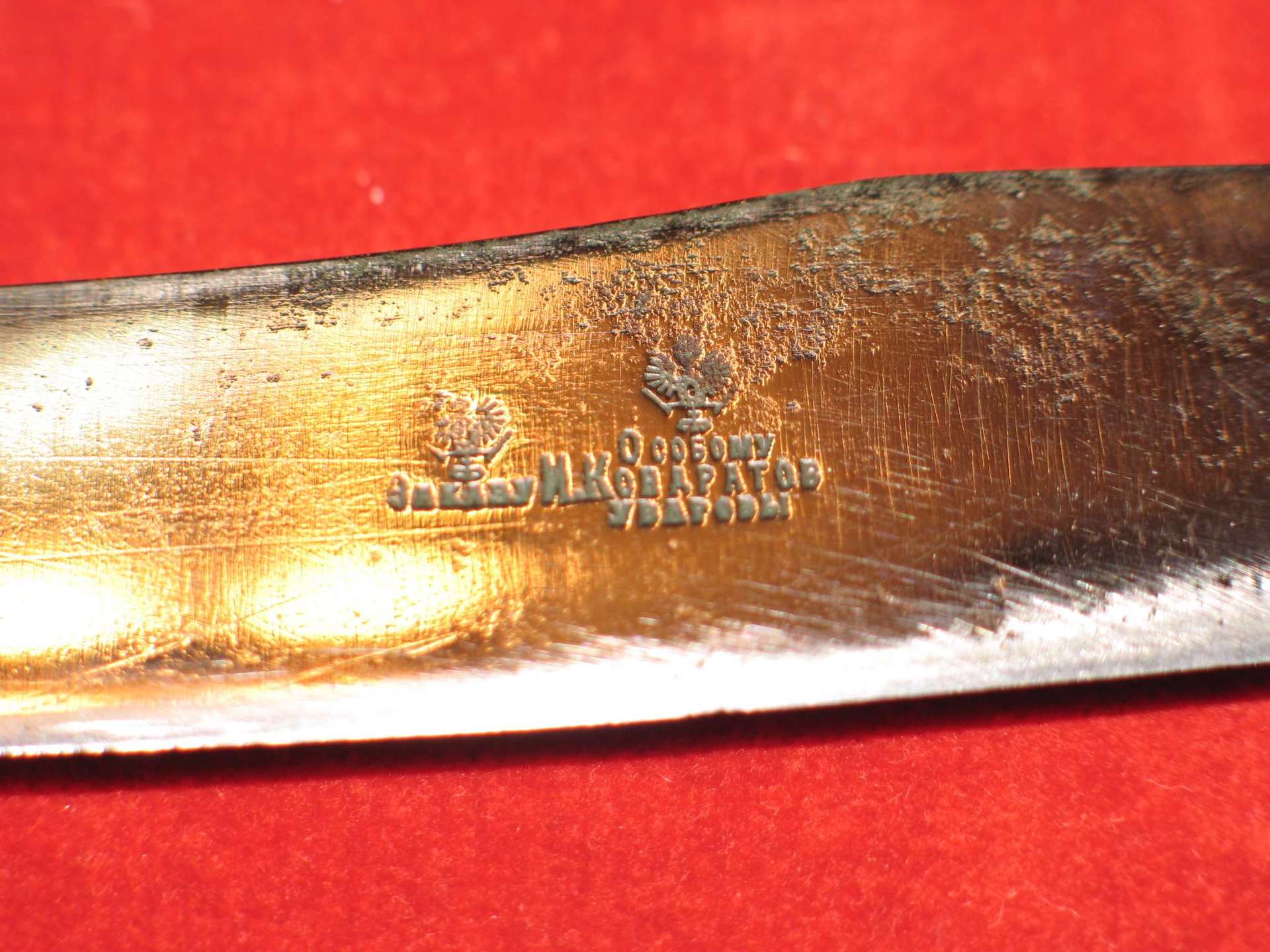 Одно можно сказать точно до 1917 года без Ъ после согласной в конце слова писать слова не умели. В начале 20х годов были клейма с орлами. Еще СССР не было, придумывали кто во что горазд. Так что ножи эти и Кондратова и Кондратьева 1918 - 1922+ годов. Тем более орлы эти не "царские" а стилизованные под них. Кондрат Квача (Поиск правды)Вот ножик Дмитрия Кондратьева