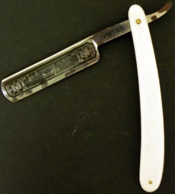 Для пущей убедительности добавлен код RZM, что немцы не далали. Также ни разу не встречал бронзовые/латунные заклепки на золингенских бритвах того периода.