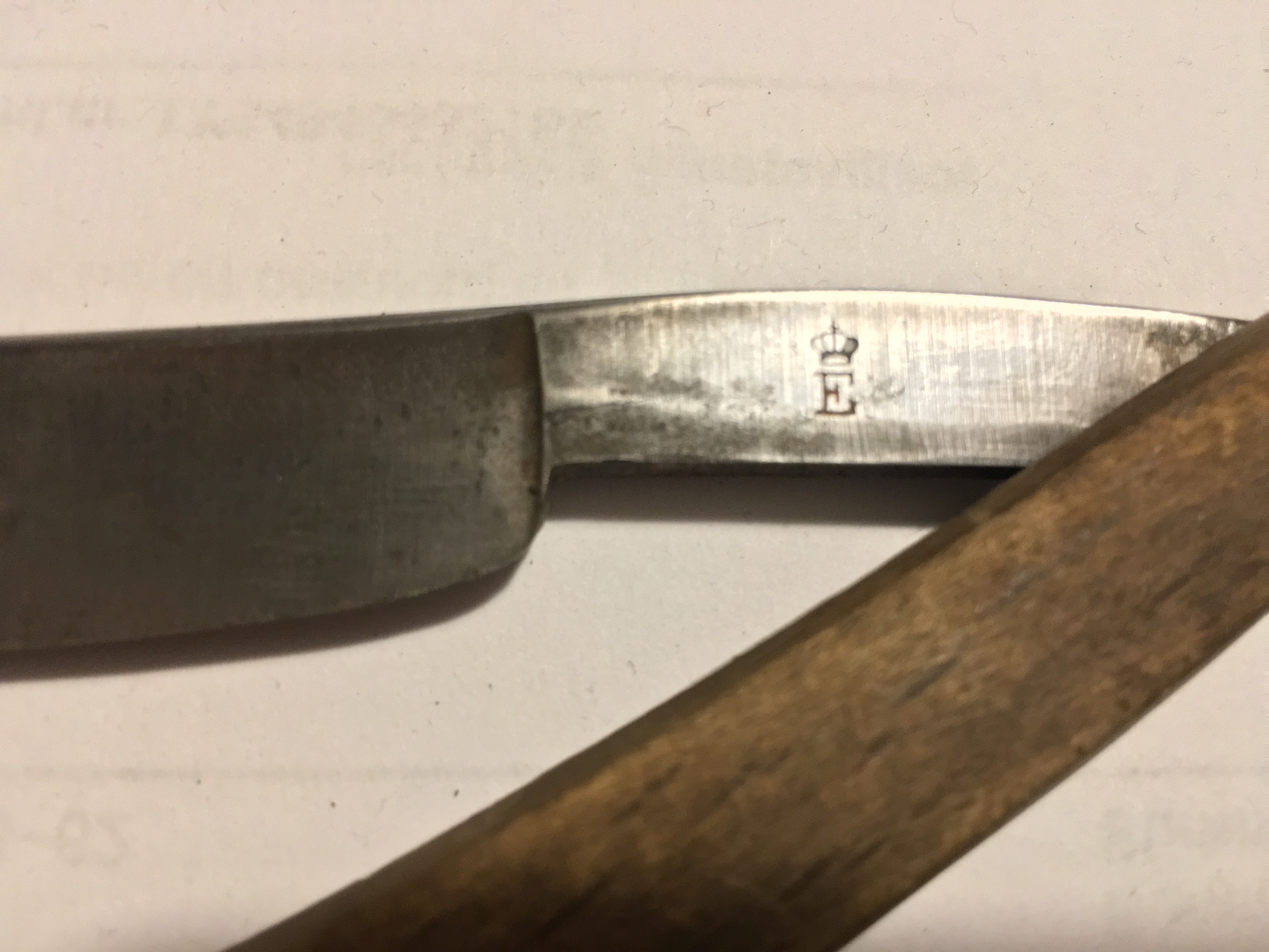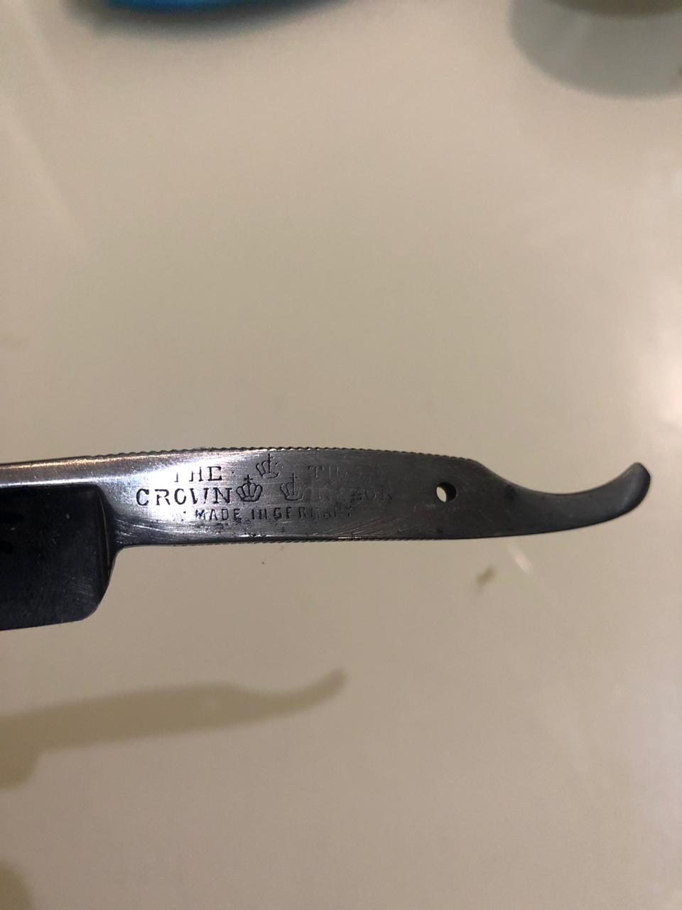 Определение производителей по кодам, аббревиатурам, клеймам.Не знаю, что за бритва, но корона похожа на британскую. Возможно, буква Е значит - England?