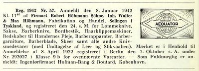 Robert Höhmann Söhne, Solingen Germany. Brand names include Aequator, DK, Esperanto, Höhmann, Rigoletto & Terra. Straight razor maker. Добавлено спустя 1 час 19 минут 17 секунд: Re: Определение производителей по кодам, аббревиатурам, клеймам. Есть инфа в талмудах, достойнее этой в 200 раз. Но не выложу и не дам, ввиду дебильного воровства одного из пустотрёпных ресурсов по женским сиськам. Тащат тексты, переписывают слова, типа это их. Ждите книгу, там почитаете. Книгу начал готовить. Минимум два года на сбор материалов. Ремонт опасных бритв, звонить с 11-00 до 23-00, +79267729357, (whats app, telegram, VK), спросить Олега.