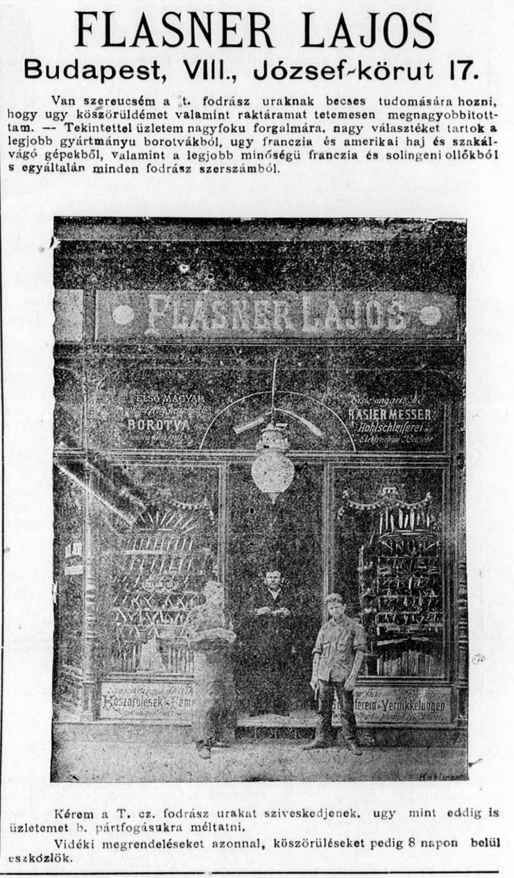 Конец 19 века - 1931 год. Затем, с 1932 года, встречается реклама " Fischer Antal Fia cég. (ezelőtt Flasner Lajos)" - что в переводе: . Компания «Фишер Антал Сон». (ранее Флазнар Лайош ).