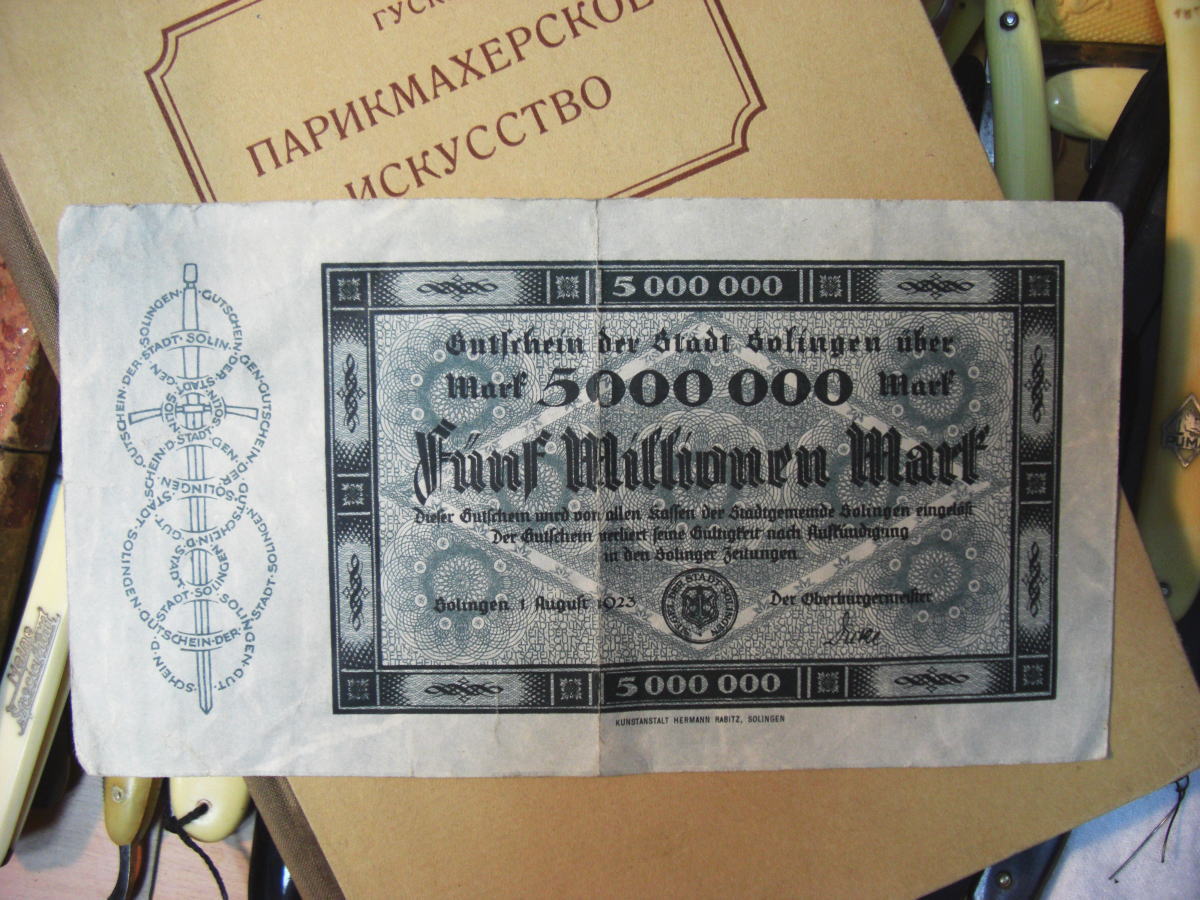 Вобщем вещи, к которым душа лежит. Имею небольшую коллекцию денег. выпускаемых в Золингене в тяжёлые кризисные времена. Монеты "нотгельд" и купюры. Последнее приобретение - Один Миллиард Марок, выпущенный в Золингене в1923 году, жду из Иркутска... Ремонт опасных бритв, звонить с 11-00 до 23-00, +79267729357, (viber, whats app, telegram, VK), спросить Олега.