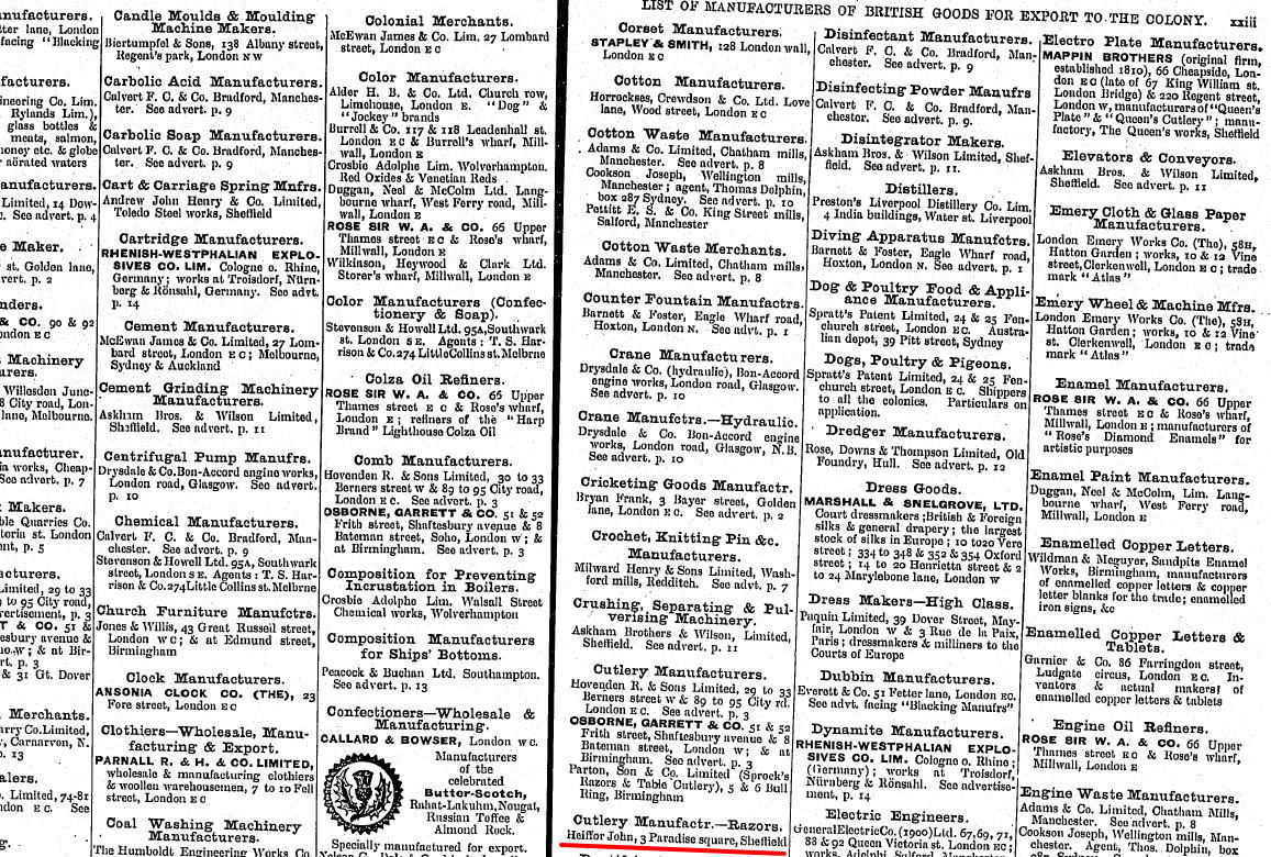 Наткнулся на архивы. Копаться в архивах никогда легко не было, но пригодятся... List of residents/businesses in Paradise Square, 1787-1925 1852 John Heiffor, Army razor &c. manufacturer (h. 11 Belfield Street) Ремонт опасных бритв, звонить с 11-00 до 23-00, +79267729357, (viber, whats app, telegram, VK), спросить Олега.