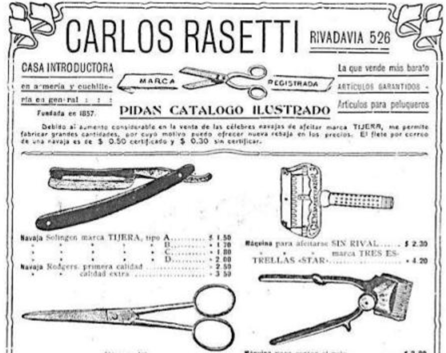 большой магазин в Буэнос-Айресе, с 1857 года. В продаже ружья, пистолеты, ну и бритвы