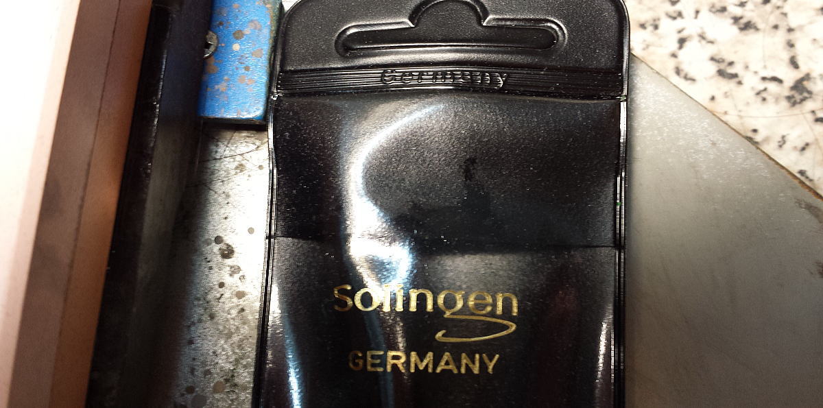 Нашёл подтверждение! Продают на аукционе за 150$: http://www.ebay.com/itm/STRAIGHT-RAZOR- ... 3a8da07266" onclick="window.open(this.href);return false; Это явно Эрн чистой воды. Ещё одна тайна раскрыта! Но нашёл я разгадку случайно. Искал в инете по другой бритве инфу. В заточку принесли бритву, моё мнение - чистый Пакистан, но... Есть одно огромное но... Бритва сделана в абсолютно другом формате, нежели раньше. Плюсы: 1. Идеальная геометрия, раньше была узкая спинка. Сейчас - всё как надо. 2. Металл! Рядом никакой китаец или пакистанец не валялся, даже близко. Металл и сама выработка в точном соответствии всем канонам и правилам. Раньше был металл как у дешёвых столовых приборов. 3. Заточка! Вот тут самое интересное - идеальная. Как у всех хороших бритв. Как у лучших ДОВО и ТИ, да и вообще просто замечательно заточилась. Буду просить хозяина побриться и снять ролик. 4. Надпись выгравирована на полотне лазером. Раньше была химическое травление. Spoiler Show Минусы: 1. Головку бритвы, запиленную напильником пришлось ровнять и полировать. Spoiler Show 3. Коряво исполнены концы ручки, но поправимо. Spoiler Show Spoiler Show Spoiler Show Spoiler Show Думаю для бритья точно подойдёт. Видимо кого-то пригласили исправить ситуацию из Золингена. Но реально исправили, всё просто на высоте. В инете про сие чудо ничего не нашёл. Ремонт опасных бритв, звонить с 11-00 до 23-00, +79267729357, (viber, whats app, telegram, VK), спросить Олега.