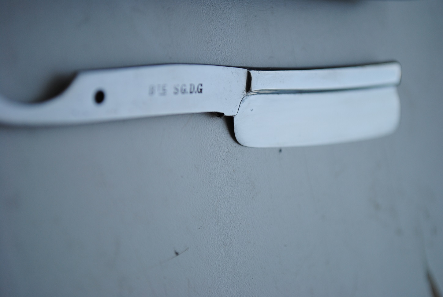 Старый французский фрейм.Старый француз. Осевой пин снят. Полотно почищено. Ручка- рог (деформировалась одна половина) выравнивается (или делается новая).