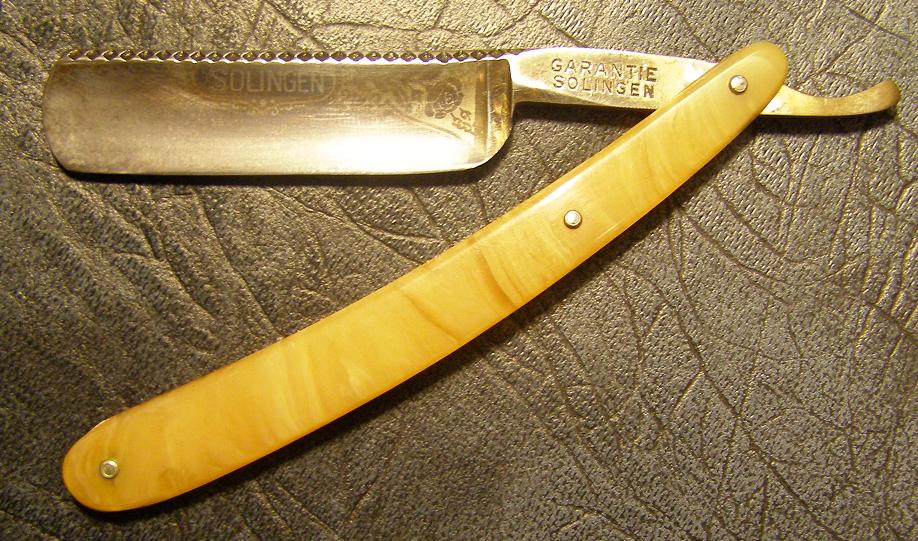 Бритва частично покрыта напылением жёлтого цвета.