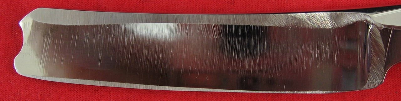 Бритва произведена в Англии, г. Шеффилд в 1818-1890 гг. Сколок, трещин нет. Ручка прессованный рог, частично "выгрызен", закрывается не плотно, ровно. Были произведены работы по удалению трещинки на полотне, т.е. произведена грубая заточка с удалением большого количества стали, режущая кромка более-менее сведена, то есть после полной заточки форма бритвы практически не изменится. Общее состояние прошу смотреть на фото и видео.