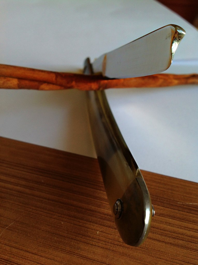 Ручка родная (рог). Была трещина возле нижнего пина - заклеена. Пины родные. Заточена.