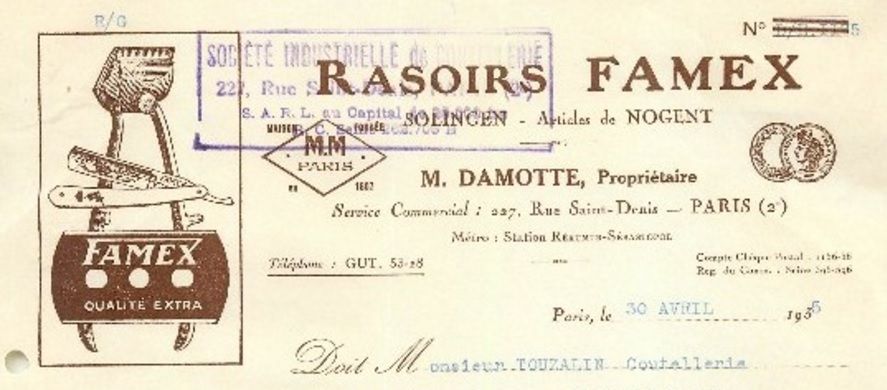 Solingen - articles de nogent Тут я не понял... articles это товары, номенклатура. А вот Nogent? Это и название многих городов и переводится как ножны...