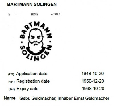 Re: Bartmann SolingenGebr. Geldmacher с 1939 года зарегистрированы, если не ошибаюсь.