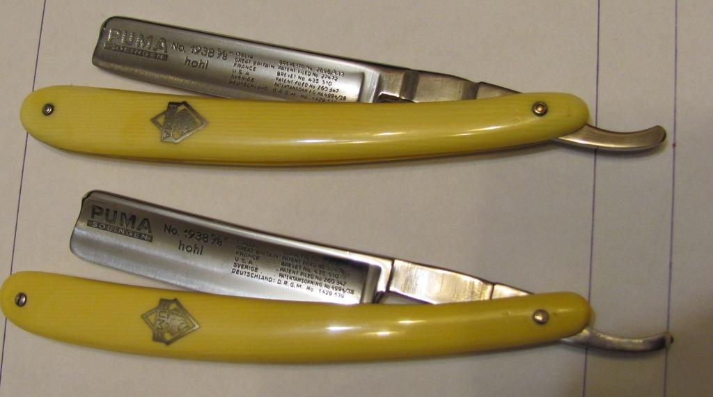 Разница в логотипах очень заметна. Ну и ещё - думаю, что на бритвах старше 1935 года (очень примерно) циферек не ставили, а возможно и мет вплавки лого тоже не было... ИМХО