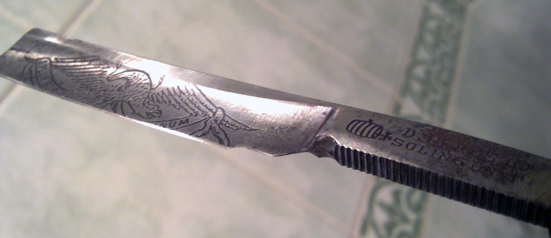 Мужики, помогите опознать бритву. Досталась от деда-фронтовика. Все надписи читаемые, всё вроде видно. По поводу латыни "на ленте", нашел ответ в Википедии, скорее всего речь идёт о надписи: "E pluribus unum", цитирую текст: "...девиз, размещённый на гербе США, в переводе с латыни означает «Из многих — единое». Эти слова принадлежат Цицерону (речь «О достоинствах»)..." Обратная сторона лезвия чистая, без надписей и штампов. И вопросы, если позволите: 1) Что за бритва-то? 2) Как побороть ржавчину в данном случае? 3) Что за форма самого лезвия, как сильно надо доводить до ума? Заранее благодарю за ответы... P.S.: Если надписей у основания не видно, то вот текст: "D.PERES 45 SOLINGER" (рядом изображён символ в виде стилизованного "бочонка с краном"). Кто сейчас на конференцииСейчас этот форум просматривают: нет зарегистрированных пользователей и 4 гостя | |