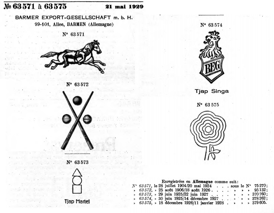 это BARMER EXPORT-GESELLSCHAFT m. b. H. 99-101, Allee, BARMEN (Allemagne) (Бремен, Германия) данный ТМ в Германии зарегистрирован в 26 году, во Франции в 1929 Судя по зарегистрированным торговым маркам (по описаниям) продавали все что угодно http://www.wipo.int/edocs/pubdocs/fr/in ... 929_05.pdf" onclick="window.open(this.href);return false; конкретно под этим ТМ собирались продавать: Spoiler Show