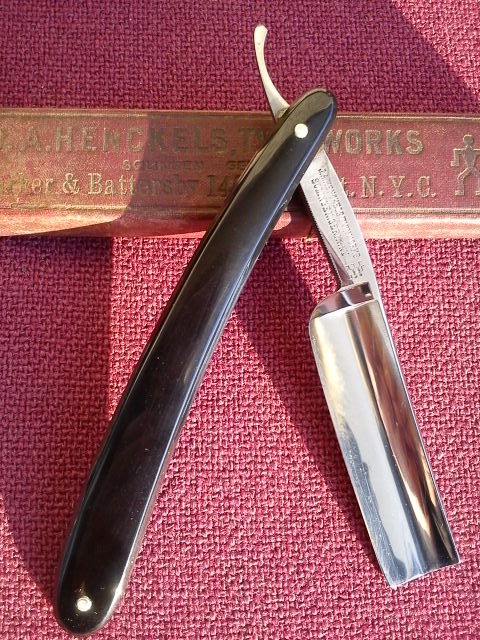 Некоторые бритвы Henckels уже отработали своё. Одно такое лезвие имеет знак Близнецов и ряд глубоко вытравленных цветов. Лезвие было найдено с резной ручкой, которая сделана предположительно из кости, несмотря на довольно бледный и гладкий вид поверхности. Большинство моделей резных ручек других фирм оформлены довольно несложно, в виде прямых линий или, возможно, резных вдоль края ручки. Резные ручки Henckels более сложны в оформлении, и бывают изменены даже по контуру. Задняя сторона хвостовика этой бритвы маркирована «GRAEF/SCHMIDT». Коробка из-под ножниц указывает на то, что эта фирма была какое-то время единственными торговыми представителями бритв Henckels в Соединённых Штатах.