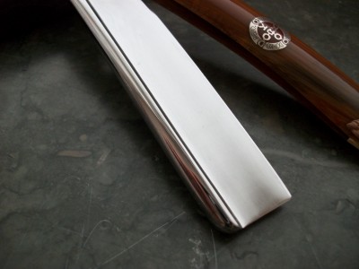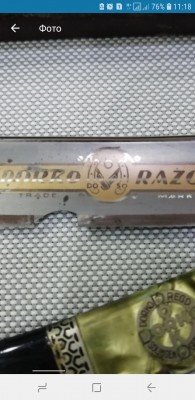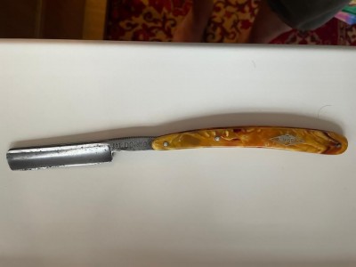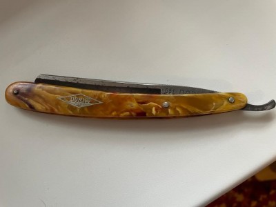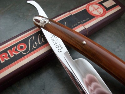 DORKO Stahlwarenfabrik, Dorten GmbH & Co. SolingenСкорее всего бритва 50-60-х годов, хотя могу ошибиться. Уточена по ширине клинка достаточно прилично, а также сточен обушок. По идее все можно более менее привести в нормальный вид. Естественно,что сильно лучше от этого бритва не станет,но эстетический вид изменится..