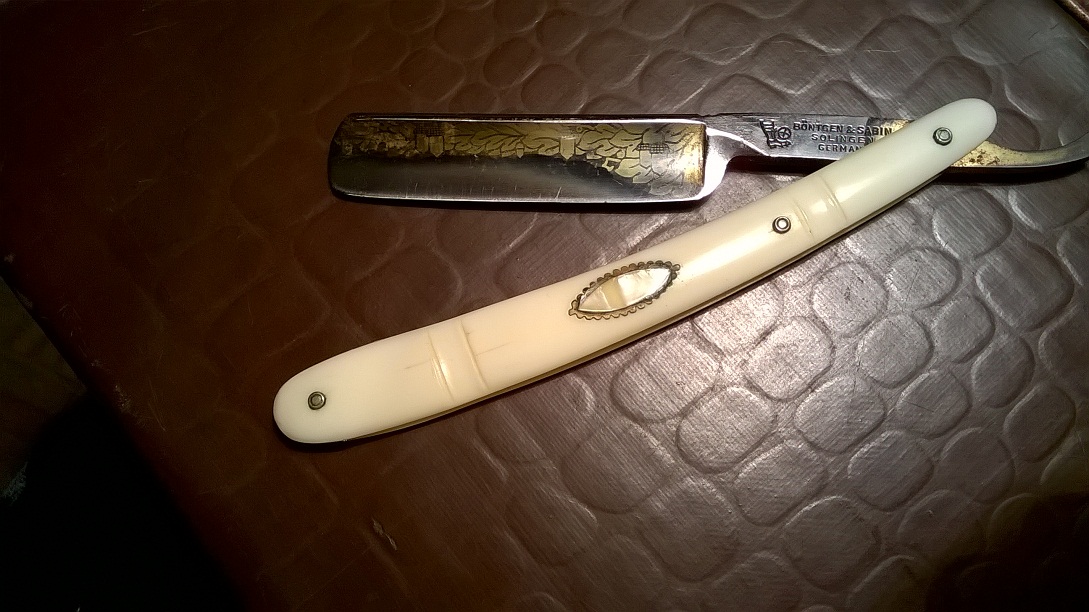 Re: "Bonsawerk", Bontgen & Sabin, Solingen (*)Есть и у меня футбольная бритва. Ручка из слоника.