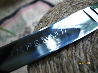 Неплохой, видимо, экземпляр для коллекции. Название близко к кромке, затачивать лишний раз... Хотя внимательность и осторожность решает многое в нашем деле :)