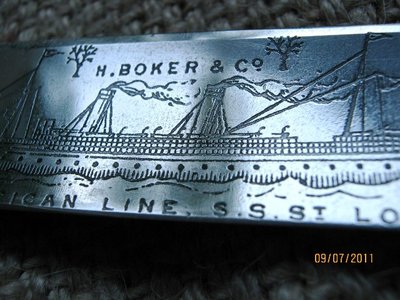 Приветствую Господа,представляю H.Boker&CO GERMANY S.S. ST.LOUIS , данную марку давно возжелал ,для завершения коллекции, первую нашел в декабре 2009 г. ,но в пересылке канула в бардаке Почты России в начале 2010 г.,хотя в Россию она пришла (и где-то ходит). Долго искал и нашел в Калифорнии. Тема бритвы почти известная. Фирма выпустила в честь парохода и думаю еще был вариант (там была дата 1939,которая пропала) в напоминание о депортации евреев из Германии в 1939 г.Не буду подробно, в интернете информации навалом,кто захочет найдет. Но кайф ,в придачу переслали открытку. Да, эрл какой-то крутой. Мнения ?