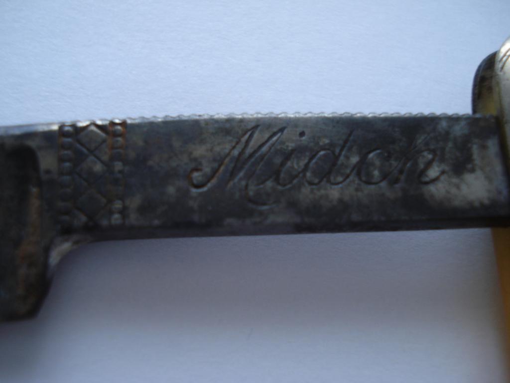 MIDCH (BECKHER-OTTE, INC. SOLINGEN made in Germany)Еще экземпляр для истории ТМ MIDCH. Первая буква в слове BECKHER, затерта до безобразия, высмотрел что все же B, но не уверен. *ECKHER и остальной текст 100%. Ручка интересная, что роданая думаю 50 на 50.