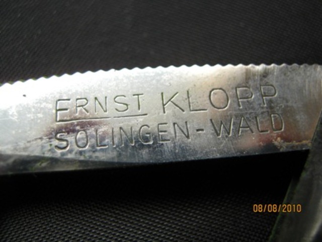 Re: ERNST KLOPP SOLINGENЕсть упоминание о фирме Gebrüder Klopp, Fabrik feiner Stahlwaren, Solingen-Wald.