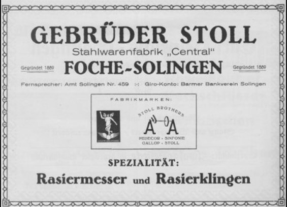 Re: GEBRUDER STOLL FOCHE-SOLINGENGebrüder Stoll, Solingen-Foche in 1900 and 1922. Brand name: 'Gallop'