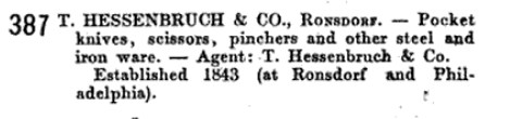 T.Hessenbruch & Co. Made in Germanyиз Amtlicher Katalog: Weltausstellung in Philadelphia 1876 (Официальный каталог: Всемирная ярмарка в Филадельфии 1876 года.)
