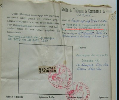 Как подтверждение таким фактам - BECHTAL принадлежит французам, P.Hospital (они же Le Grelot), которые зарегистрировали её в германии (1960 год) однако бритва сделана на довольно известной фабрике Iserloh. И в регистрации указано явно: Vertr.: Dr.H. Iserloh, где Vertr. это vertraglich - по контракту. а вот почему и зачем такое происходило, пока не понятно. а это французский патент на ТМ: в тему производства в Германии. лезвия "английские" Wilkinson тоже делались в Германии))) .
