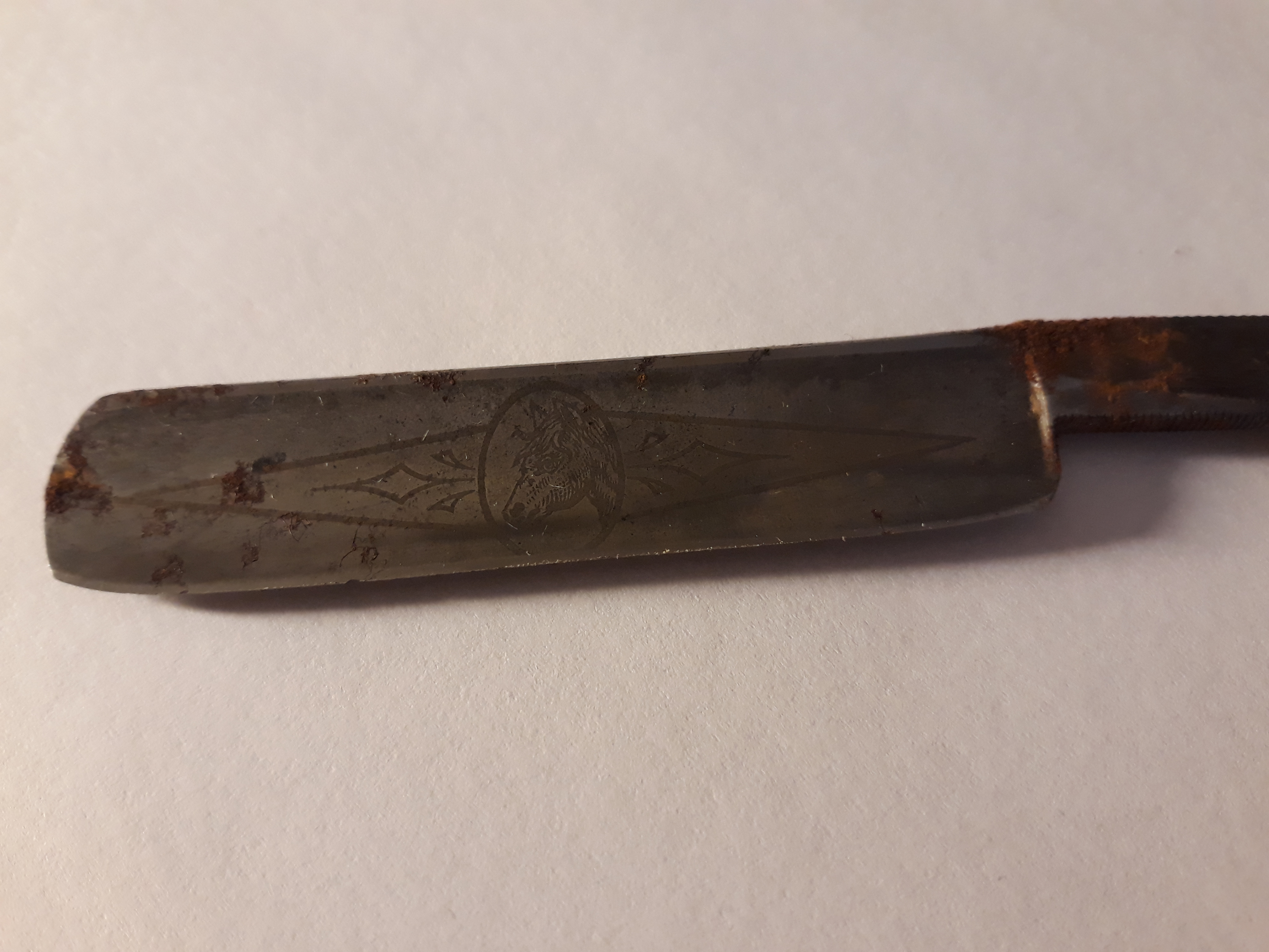 2. вопрос. Хочется более менее привести эту бритву в порядок. Чем лучше ржавцину снять, дабы не повредить лезвие и гравировку на нем. Лошадка там красивая