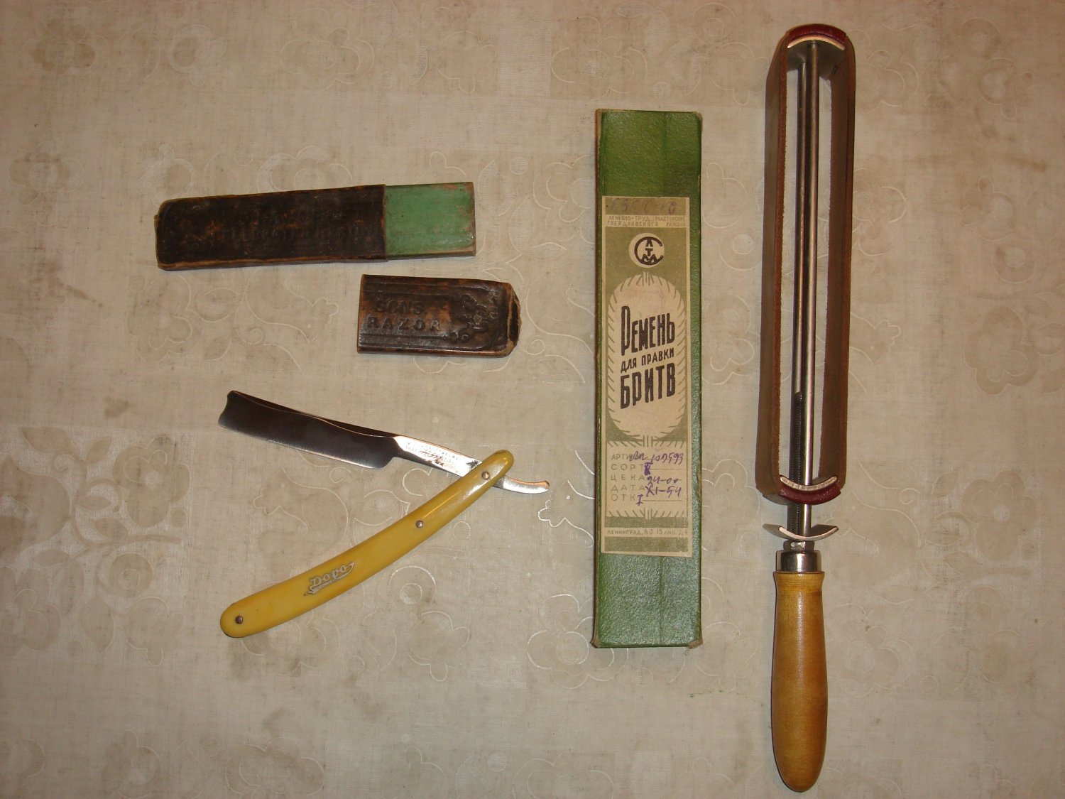 Ручка - DOVO - http://www.britva.ru/articles/producers/dovo.php" onclick="window.open(this.href);return false; Полотно бритвы - W.HAWCROFT&SONS, Bath Works, Sheffield, 1892 г. Корни фабрика ведёт, как я понял, с конца 18-го века. Имхо. Ну а с ремнём вроде и так всё ясно. Ремонт опасных бритв, звонить с 11-00 до 23-00, +79267729357, (viber, whats app, telegram, VK), спросить Олега.