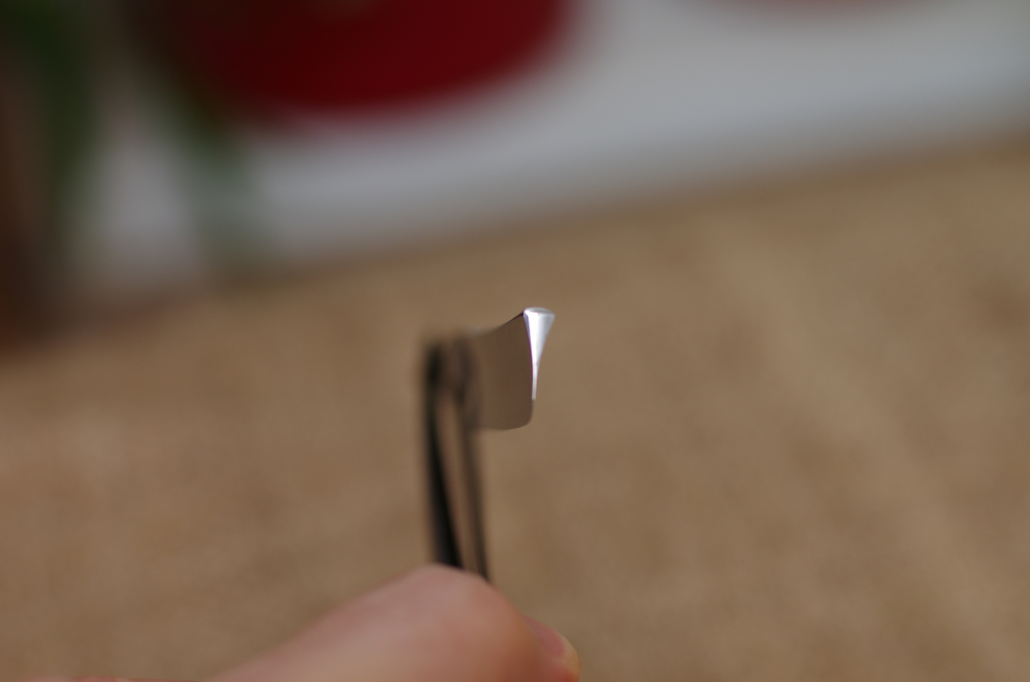 Есть подозрение, что бритва сильно уточена (это снизит её цену), однако, судя по соотношению ширины полотна и ширины ручки, впечатление может оказаться обманчивым.