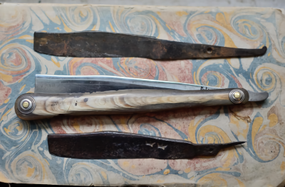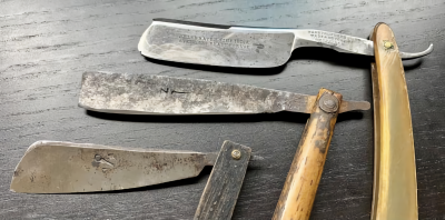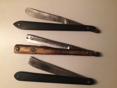 На этом фото: внизу - бритва конца 17-го или начала 18-го века, в середине - вероятно 1720-1730 годы, Батчер - представлен для сравнения: