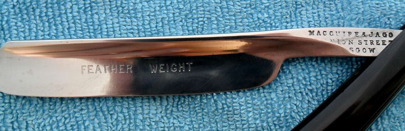 Надпись на полотне FEATHER WEIGHT - вес пера. Бритва действительно очень легкая и изящная.