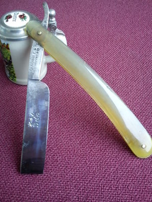 J. Nowill & Sons Sheffield est. 1700.Я давно не покупал бритвы в таком великолепном состоянии! Ручка из рога. Свинцовый разделитель. Фирма так же известна своими ножами и кинжалами. А так просто красавица!