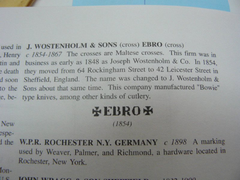 Энциклопедия Гоинса имеет отдельные недостатки. Однако в отношении марки EBRO достаточно категорично дает даты активной работы компании J.Wostenholm & sons (1854-1867), дату регистрации торгового знака (1854), а также информацию о более позднем использовании торговой марки EBRO фирмой А.Kastor & brothers (начало двадцатого века). Попадалась мне и статья, в которой говорилось о происхождении слова EBRO. Скорее всего оно произошло от слов & brothers (и братья), которые часто встречались в названиях компаний. Только ссылку пока не нашел. Больше материалов можно посмотреть на SRP забив в поисковик EBRO. Что-то эту бритву очень активно обсуждали.