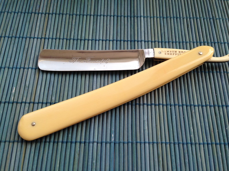 Из личных имений , так сказать . Такая вот приятная на внешний вид бритовка . Белая ручка и отделка эрля под кость .
