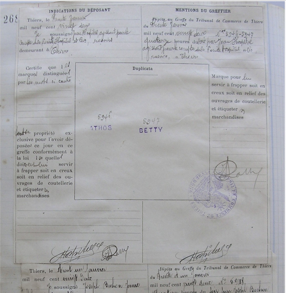 Фото регистрации торговой марки в 1912 году. Впервые есть также знак "Le Roi Solei" или Короля Солнца.