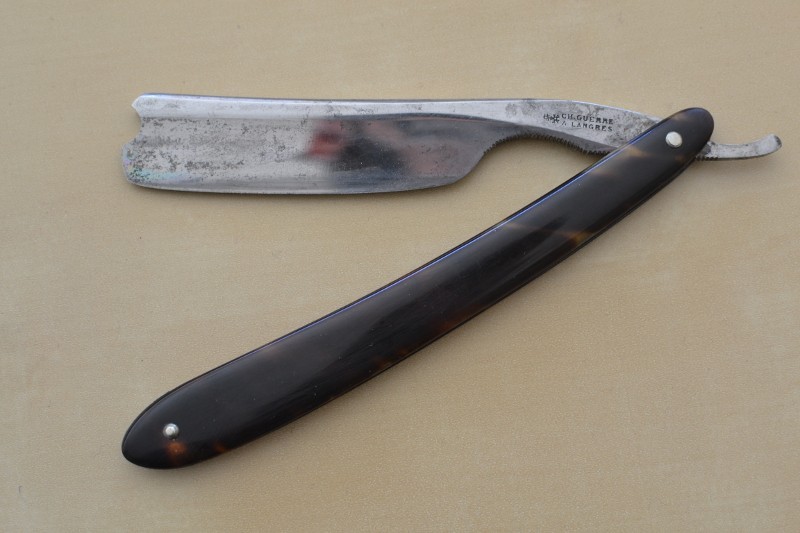 Так же погулял по сети и позаимствовал немного фото у французского форума. Есть пара музейных бритв из Лангра и еще один Guerre в черепахе. Производитель явно неординарный, видно по качеству исполнения. Кроме того спрос на бритвы Guerre стабильно высокий, не раз видел как торги на ебэй доходили до внушительных сумм. Мне, как и писал выше, моя пара досталась исключительно из за привередливости продавца, который не отправлял за пределы Франции и не принимал других способов оплаты кроме чека. История занимательная. Пришлось в итоге просить своего знакомого во Франции чтобы он выписал чек, отправил его в письме, а после сходил на почту для получения и переслал бритвы на мой адрес в Россию. За что ему огромное спасибо.