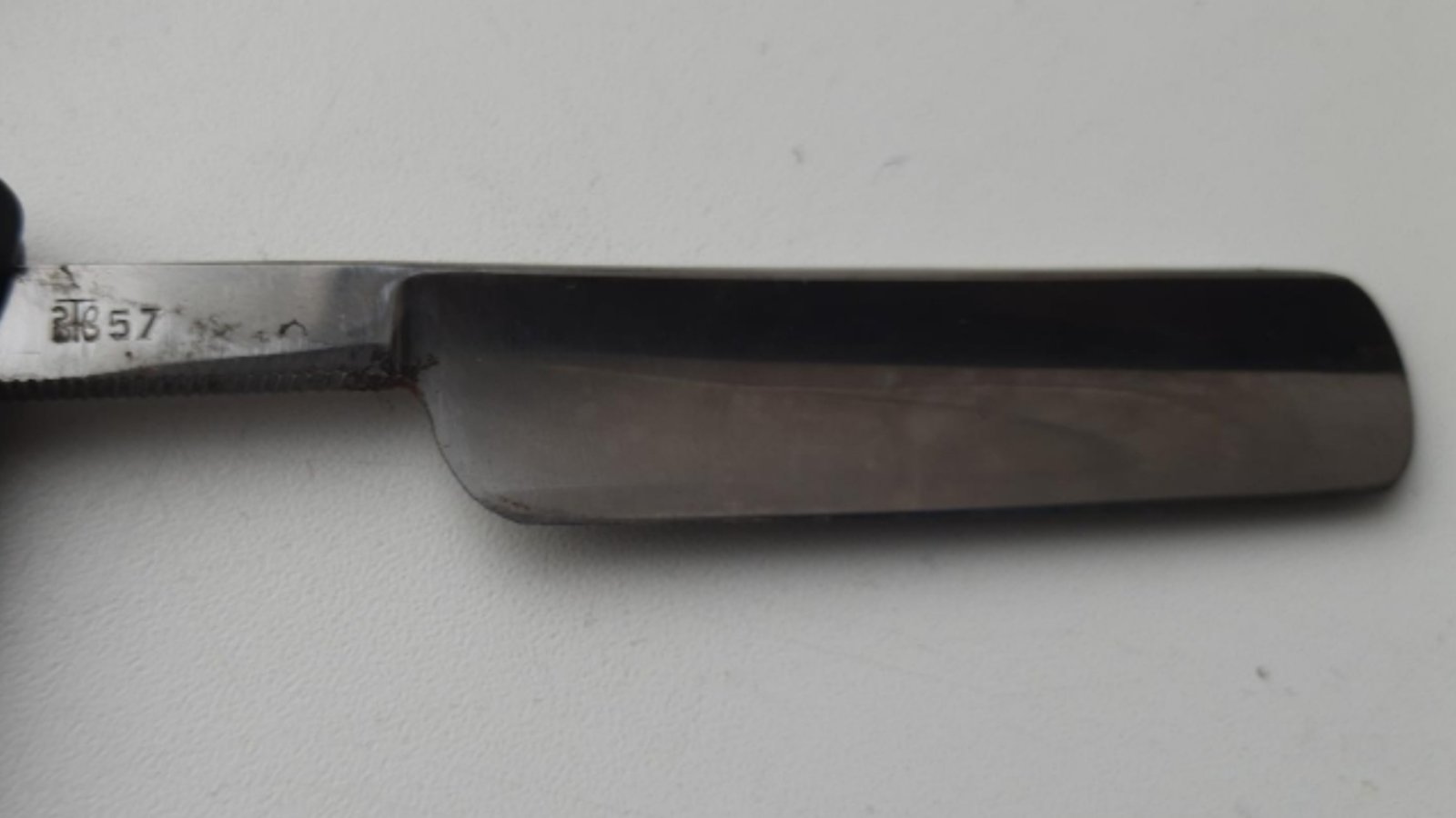 Добыча с барахолкиА кто говорит,что с бритвой что то не так?Фото не совсем информативное ,так как сильно затемнен клинок.Но,форма лезвия оригинальная,следов уточки на обушке не видно.По всей видимости или непользованная,или немного б.у.Если ещё и клинок сам целый и чистый от коррозии,то можно сказать,что бритва неплохая.Какой то скол у носика присутствует и если это не трещина,то это исправимо.Нужны нормальные фото,для окончательного вердикта