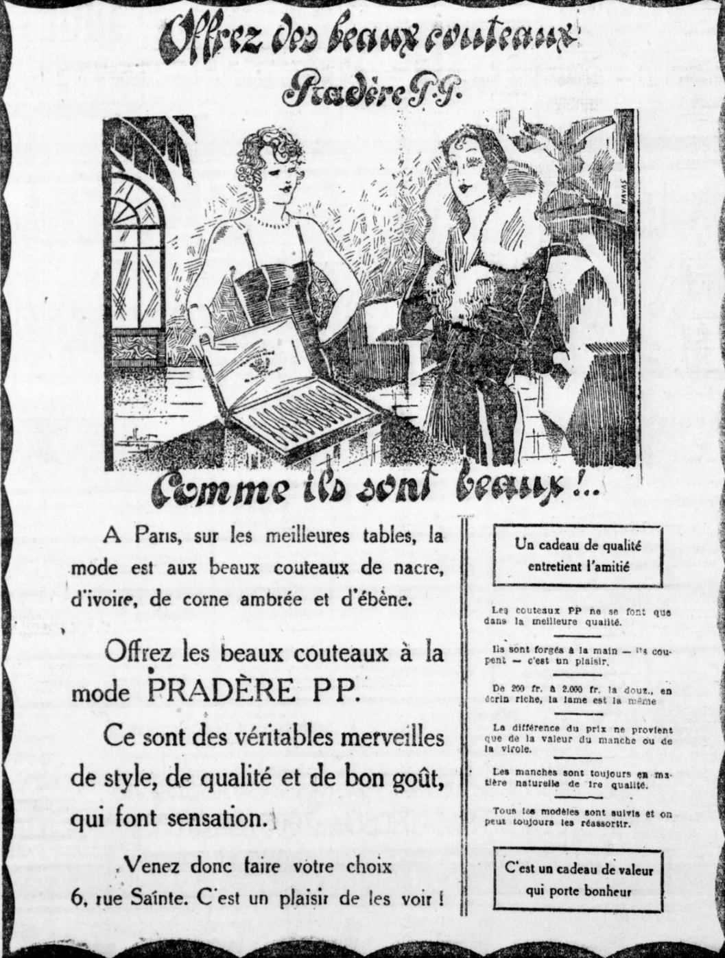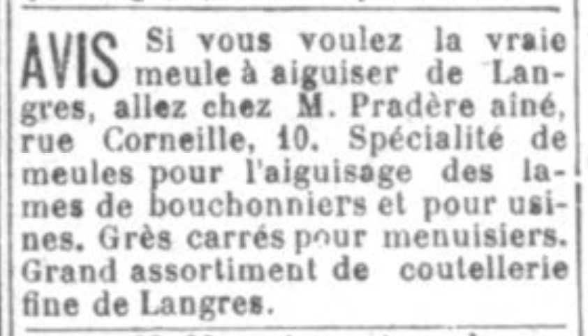 PRADERE AINE . 6, rue Sainte, MARSEILLEПервая реклама этого магазина (или бизнеса ножовщика PRADÈRE AÎNÉ) встретилась в газете Le Petit Marseillais, 4 января 1896 года: